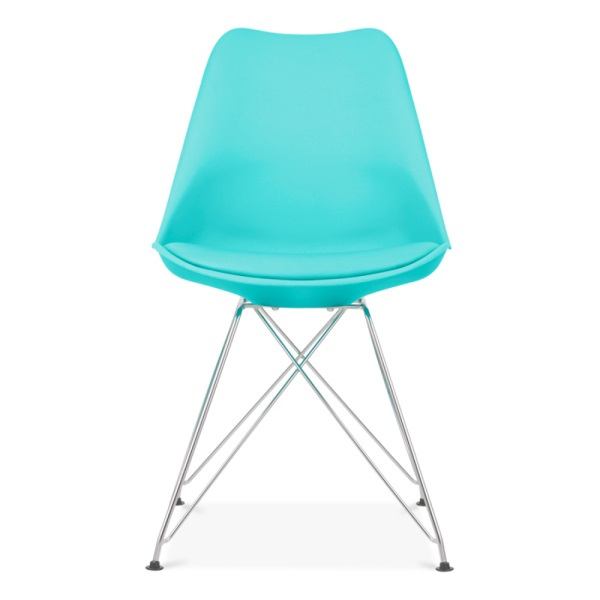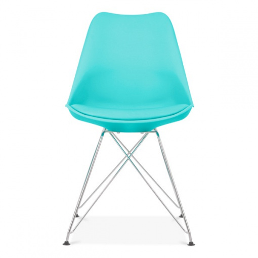 Стул пластиковый, материал сидения полипропилен, на сидении подушка, материал кожзам, не снимается, ножки металлические с хромированным покрытием, размер стула: ширина сидения 50 см, глубина сидения 43 см, высота от пола до верхнего края спинки 81 см, высота посадки 45 см.