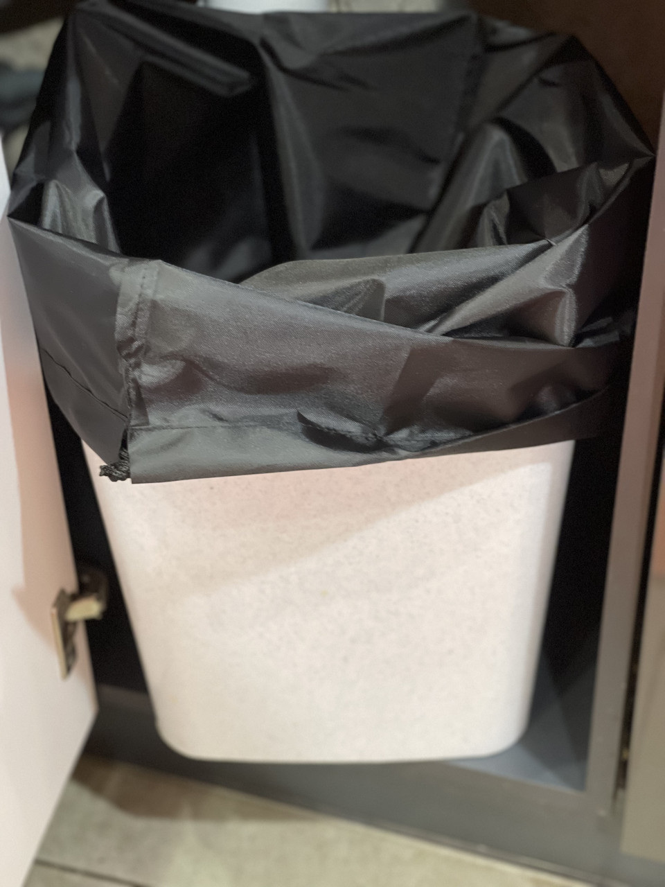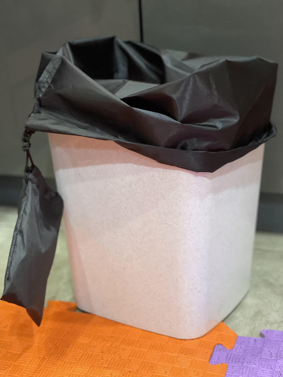 Оснащен специальным регулируемым шнурком. Удобный фиксатор. Удобная в использовании – после наполнения сумки мусор легко выбросить в бак, а сам Трешер сложить и упаковать в еще одну специальную сумку, которая крепится к сумке.