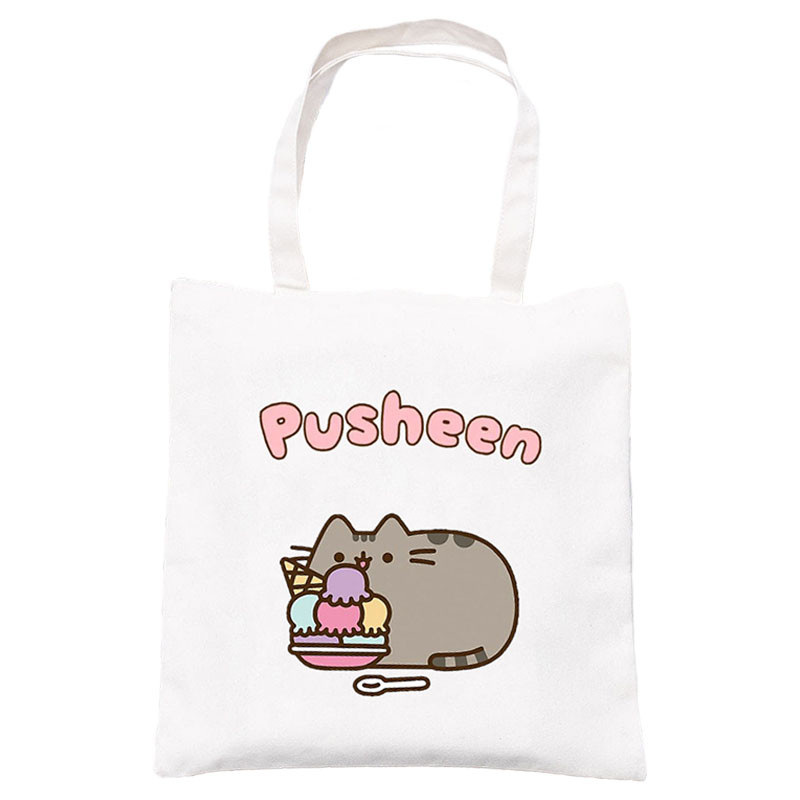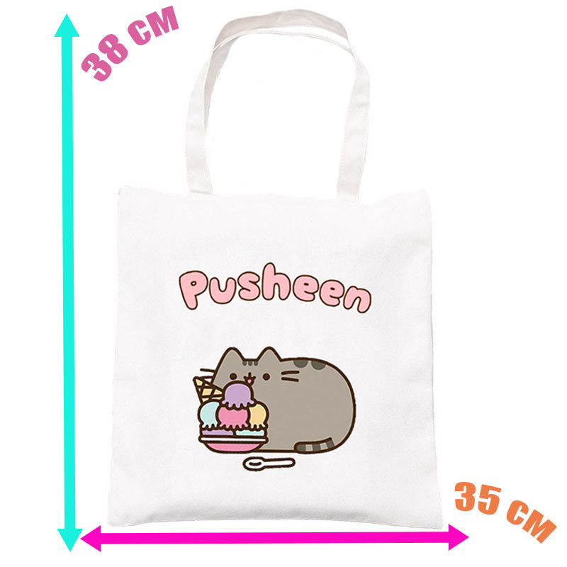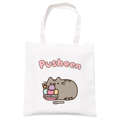 Сумка эко-шоппер 2Life Pusheen cat Кот с мороженым 35х38 см на молнии Белый (v-12143)
