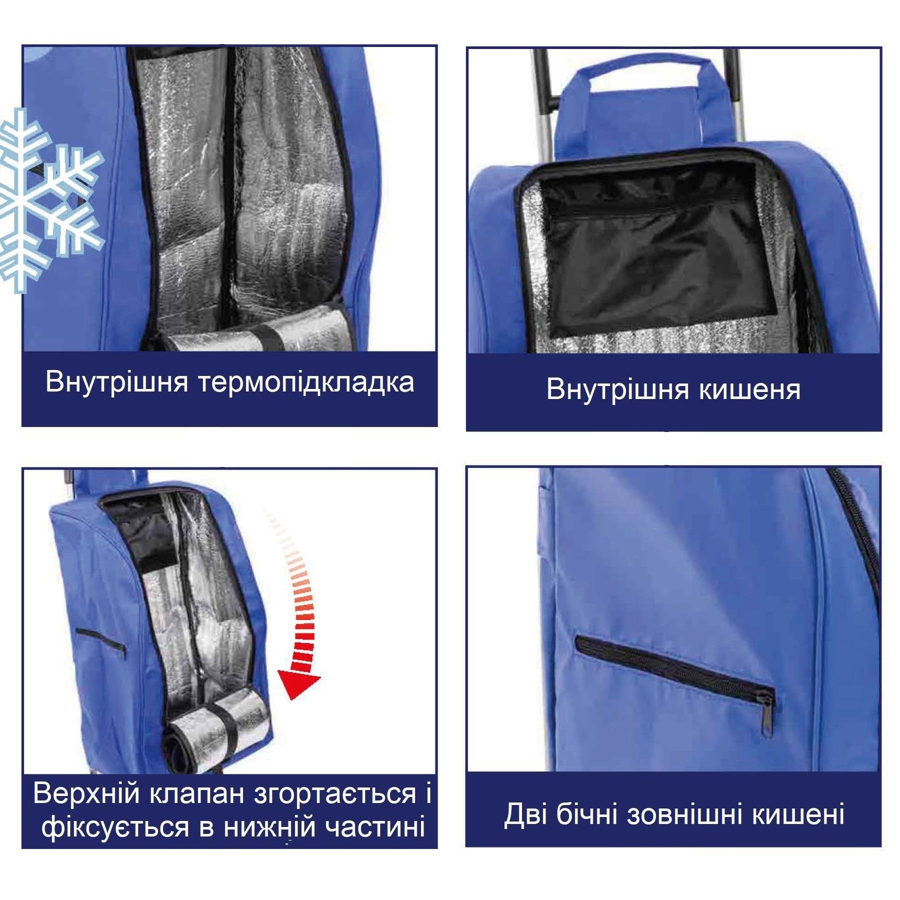 • Верхняя текстильная ручка позволит переносить и использовать сумку отдельно от тележки.