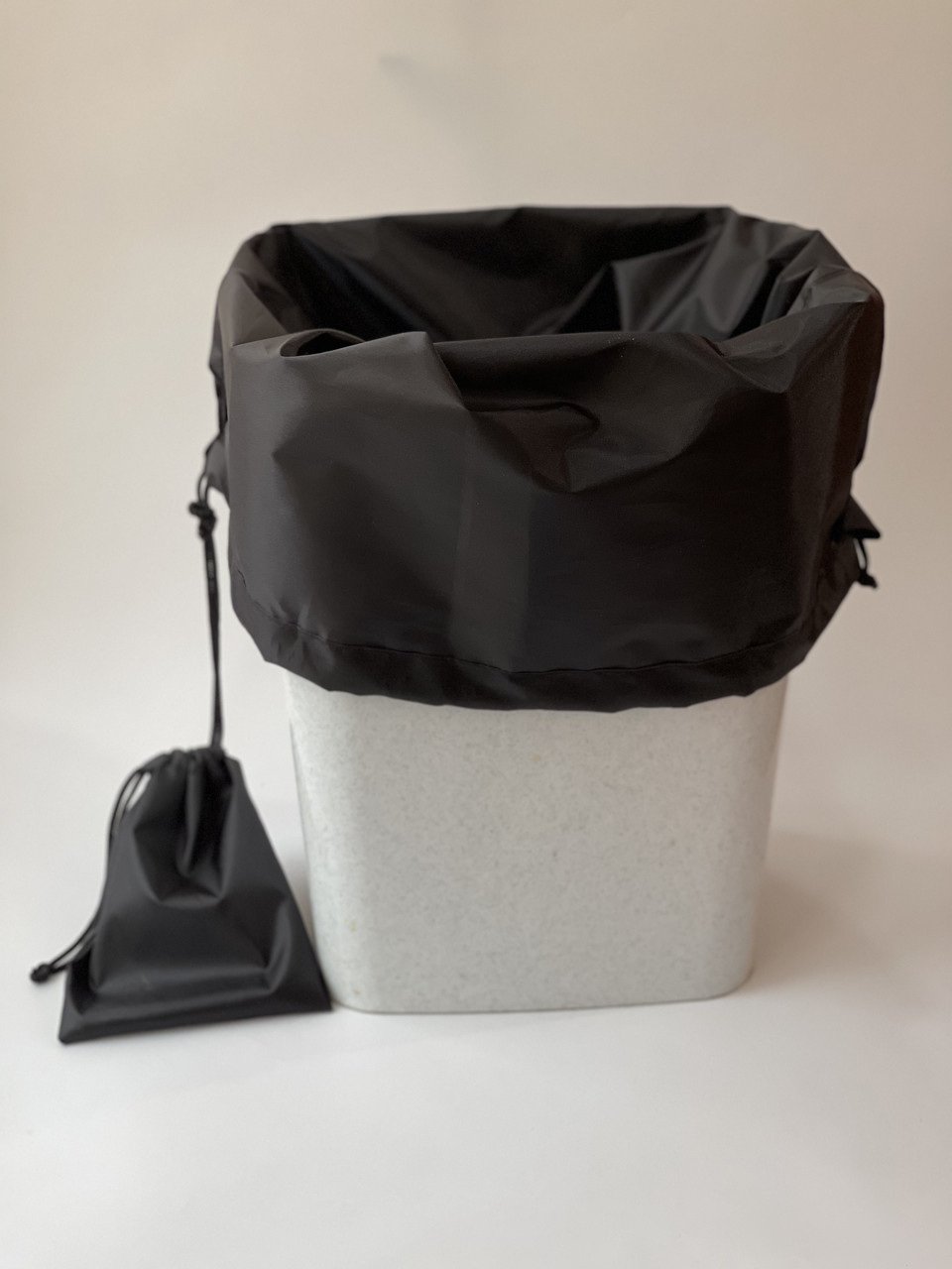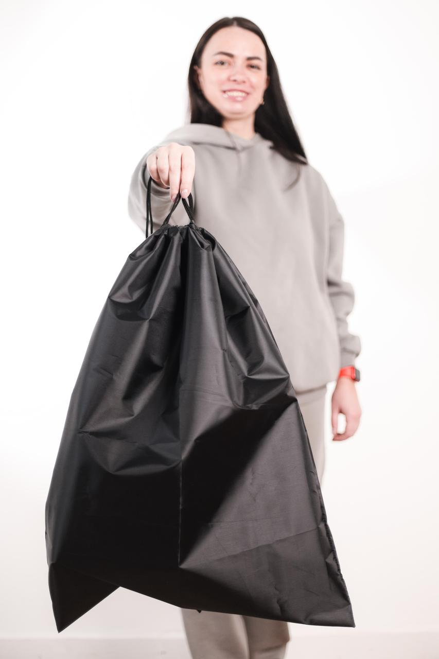 Оснащен специальным регулируемым шнурком. Удобный фиксатор. Удобная в использовании – после наполнения сумки мусор легко выбросить в бак, а сам Трешер сложить и упаковать в еще одну специальную сумку, которая крепится к сумке. Герметически упаковав сумку в сумку, легко нести ее даже в женской сумочке или кармане – сто процентов никаких запахов и протечек. Специальный мешочек (сумка), изготовлен из прорезиненной ткани. Легко стирать и сушить. Размер: 50*70 см большой мешок, 10*15 см маленький мешок. Об‘єм: 60 л.