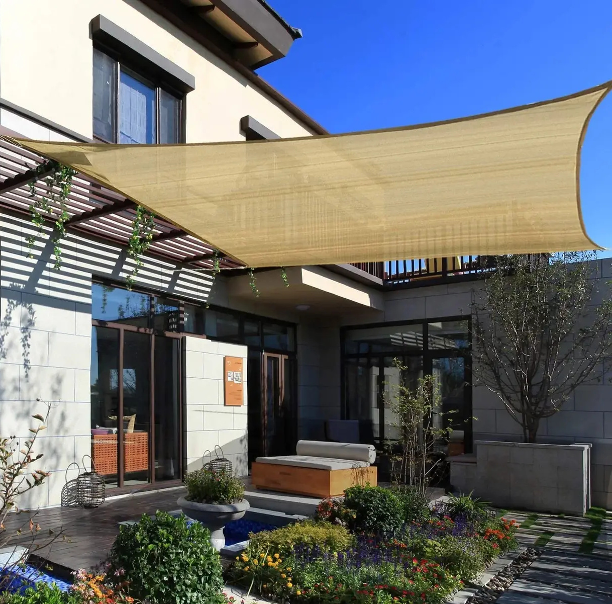 Создайте комфортное затененное пространство с теневым тентом. Этот современный и эстетичный элемент легко впишется в любой дизайн, обеспечивая надежную защиту от солнечных лучей и ультрафиолета.