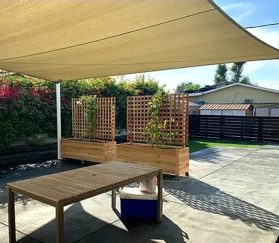 Предлагаем теневые тенты в форме прямоугольника с использованием материала - декоративная теневая сетка.