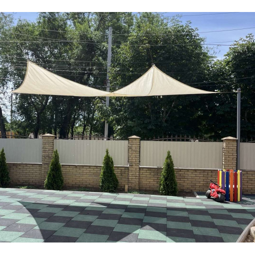 Предлагаем теневые тенты в форме прямоугольника с использованием материала - декоративная теневая сетка.