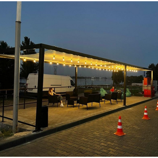 •  Для ресторанов и кафе – как стильное решение защиты от солнца, ветра и дождя