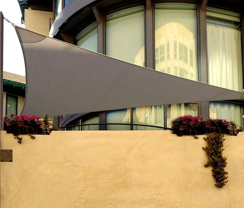 Теневые тенты в форме треугольника с использованием материала - высокотехнологичная ткань с водостойким покрытием Оксфорд.