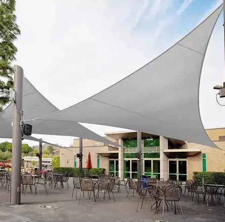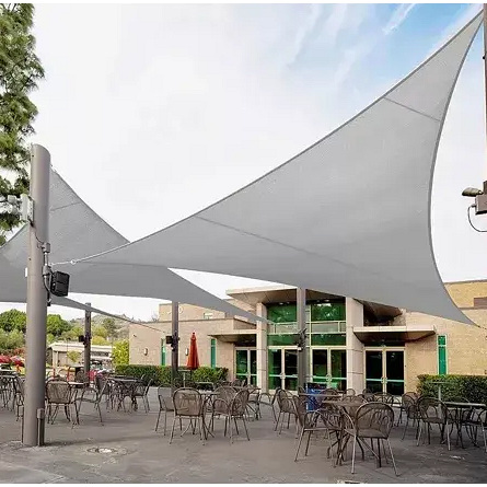 Теневые тенты в форме треугольника с использованием материала - высокотехнологичная ткань с водостойким покрытием Оксфорд.
