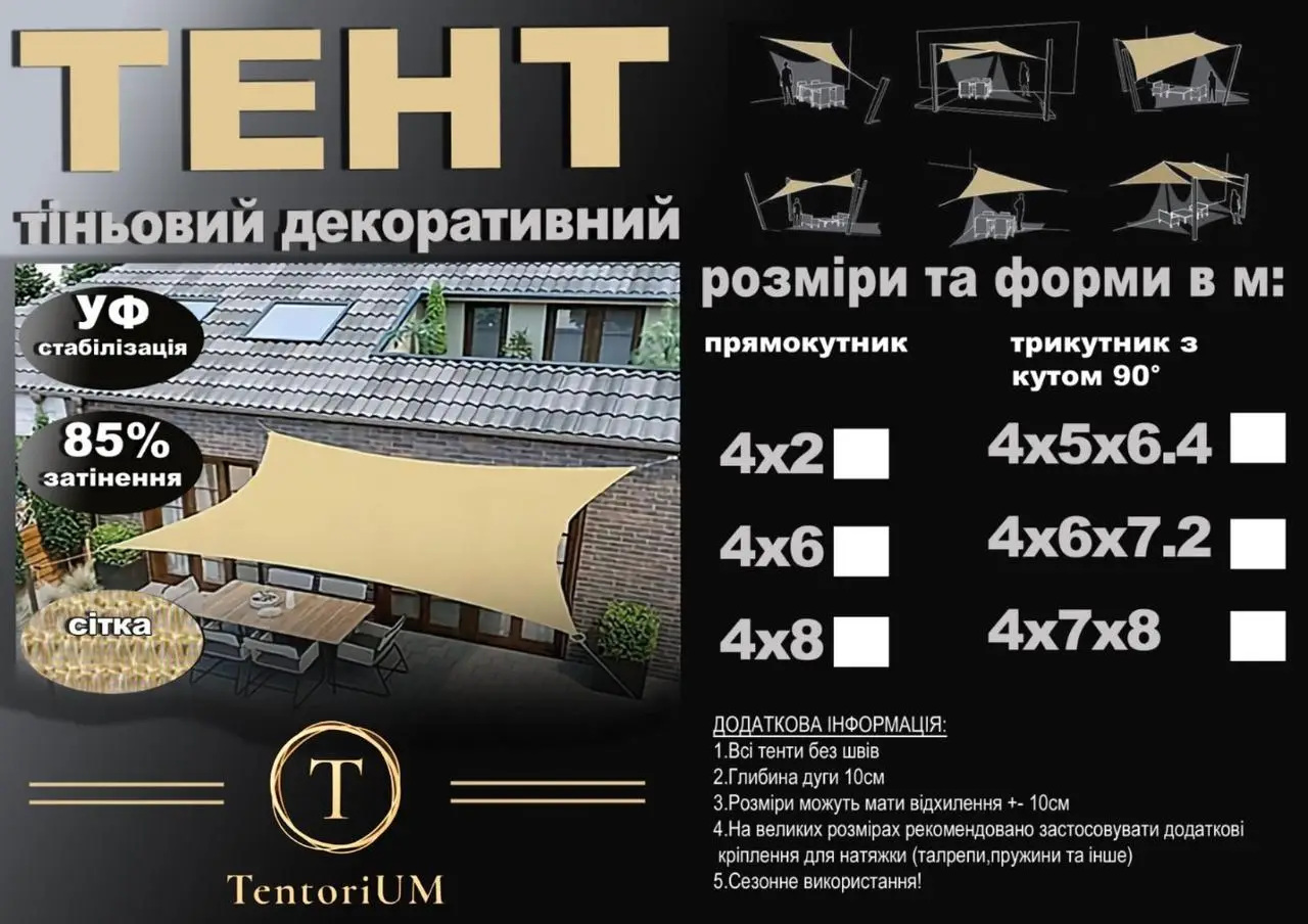 Тент навес затеняющий треугольный No Brand Tentorium 400x700x800 см Бежевый (2576197669)