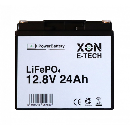 Аккумулятор XON PowerBattery LiFePO4 имеет высокую емкость 24 А*ч, напряжение 12.8В и низкий уровень саморазряда, что делает его идеальным выбором для длительного использования.