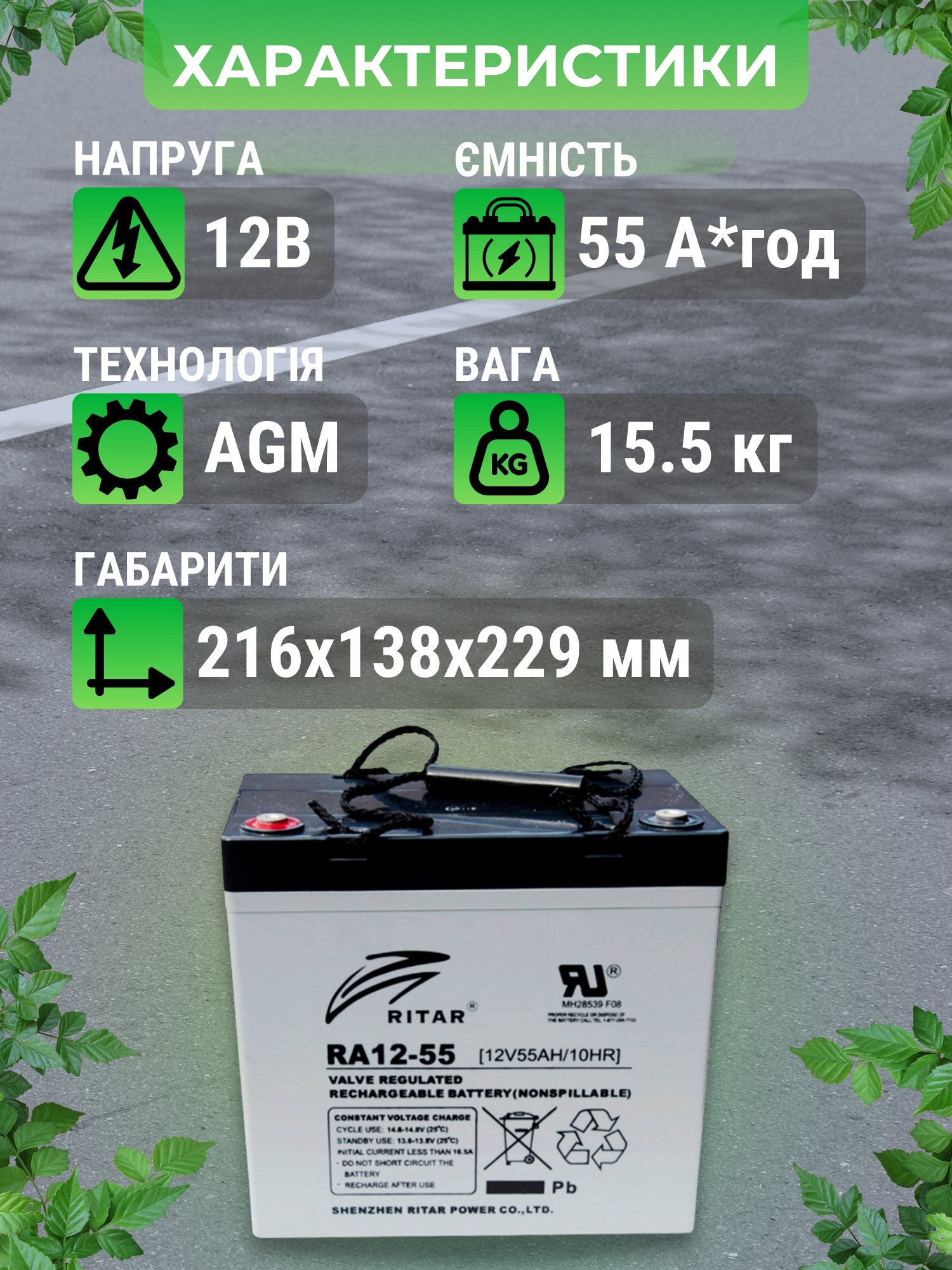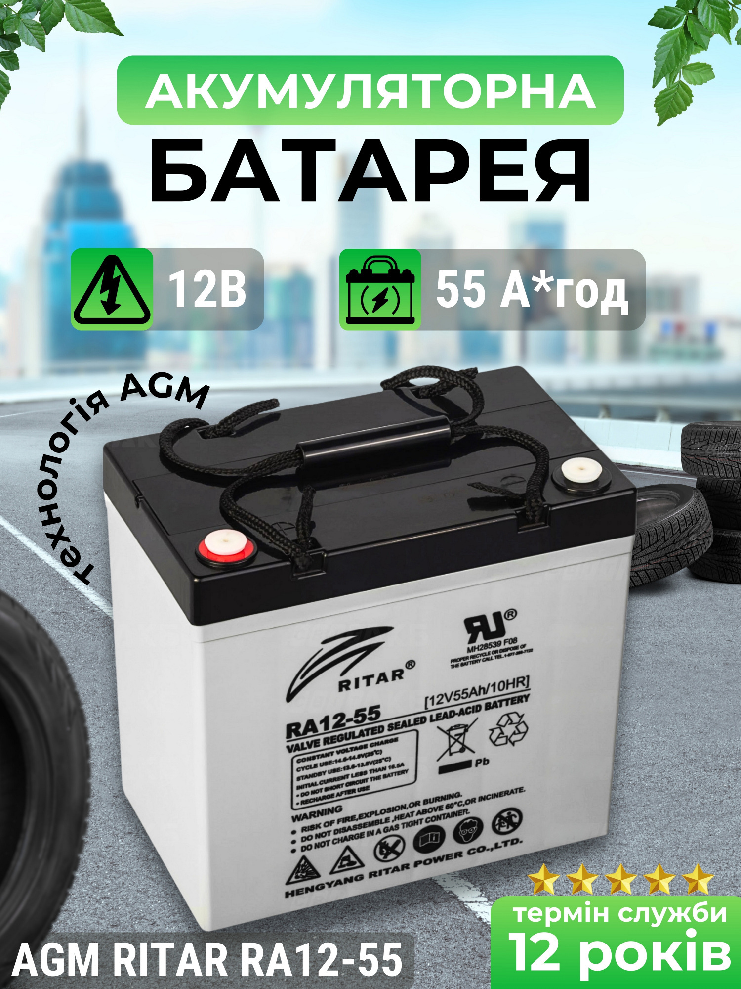 Аккумуляторная батарея Ritar RA12-55 12 В 55 A AGM для ибп
