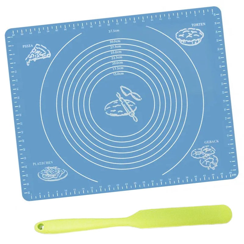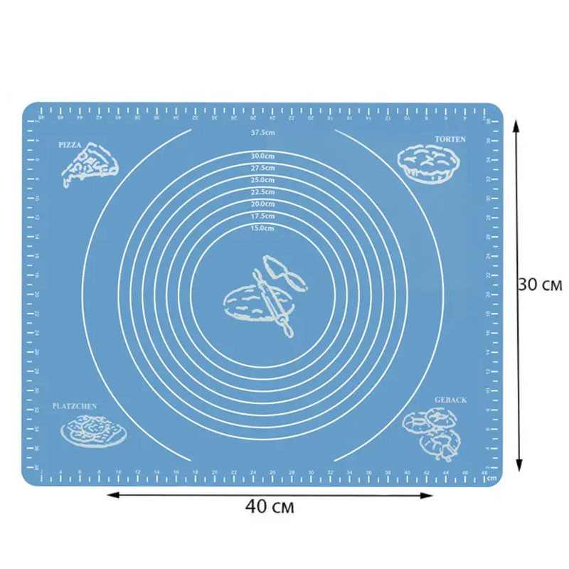 Характеристики коврика: Разметка в сантиметрах по краям и круги от 15 до 37,5 см — удобно для теста под пиццу, коржи и печенье Иконки с назначением: pizza, torte, gebäck, plätzchen Противоскользящая и антипригарная поверхность Температурный диапазон: от -40°C до +230°C Легко моется, можно использовать в духовке и морозилке Силиконовая лопатка: Мягкая, эластичная и прочная Не оставляет царапин на посуде Отлично подходит для кремов, теста, глазури Яркий дизайн — легко найти среди кухонных принадлежностей Преимущества набора No brand: Безопасные пищевые материалы (BPA-free) Идеален для выпечки, замешивания, глазировки Коврик легко сворачивается для хранения Цветовое сочетание добавит яркости вашей кухне Подходит как для личного использования, так и в подарок — практично, красиво и качественно! Наша рекомендация: перед использованием промыть теплой водой с добавлением нейтрального моющего средства. О разнице в цвете: Все товары сделаны на натуральных фотографиях. Из-за различных мониторов и освещения при съемке, факторов окружающей среды и т. д., есть небольшая разница в цвете, которая объективна и ее нельзя избежать! Хроматическая аберрация не является проблемой качества.
