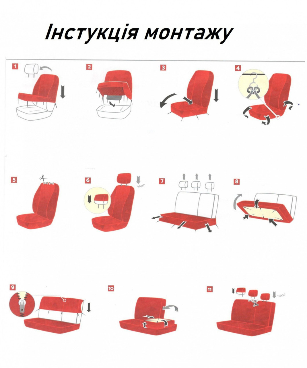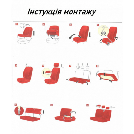 Чехлы для спинки и заднего сиденья оснащены системой молний, благодаря чему чехлы можно использовать в автомобилях как с полными, так и с разделенными сиденьями.