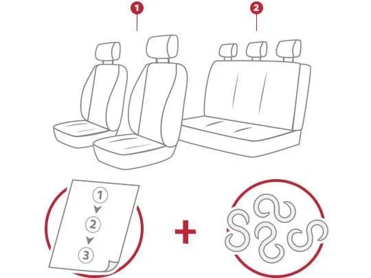Чехлы для спинки и заднего сиденья оснащены системой молний, благодаря чему чехлы можно использовать в автомобилях как с полными, так и с разделенными сиденьями.