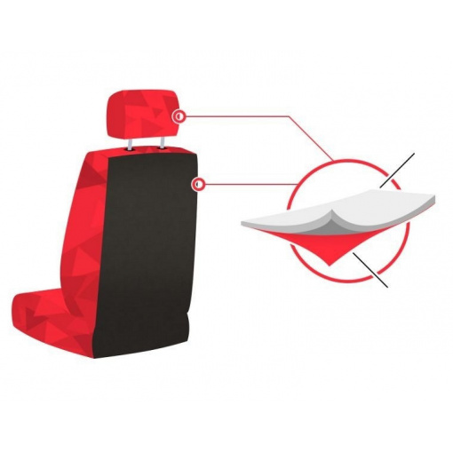 Чехлы для спинки и заднего сиденья оснащены системой молний, благодаря чему чехлы можно использовать в автомобилях как с полными, так и с разделенными сиденьями.