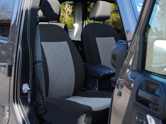 Отделочный материал - трикотажное полотно характеризуется гибкостью и повышенной стойкостью к истиранию и износу. Структура материала позволяет лучше подогнать чехлы к оригинальной обивке.