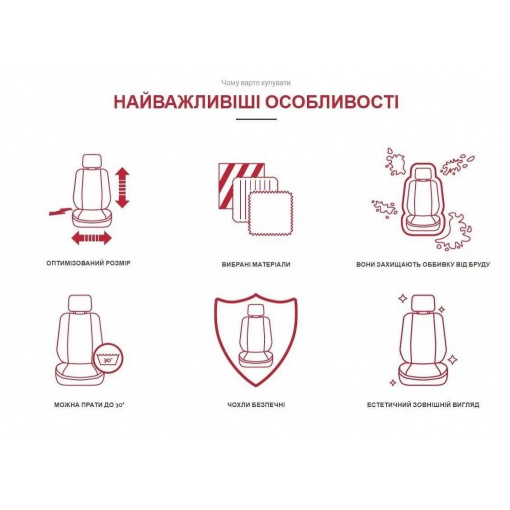 В комплекте с накидками на передние сиденья входят монтажные крючки, благодаря которым монтаж займет всего 5-10 минут, что делает процесс установки максимально простым и удобным.