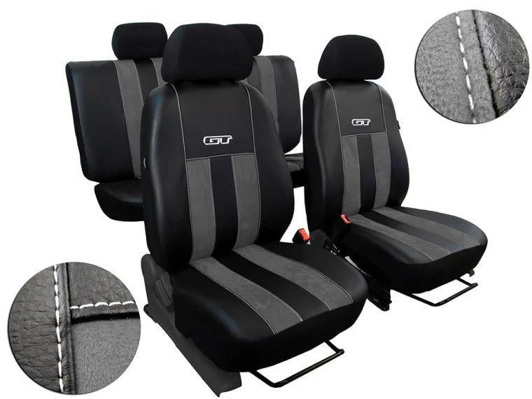 Чохлы для автомобиля GT line изготавливаются из экологичной кожи со структурой из натуральной кожи. Чехлы имеют повышенную стойкость к истиранию и износу.