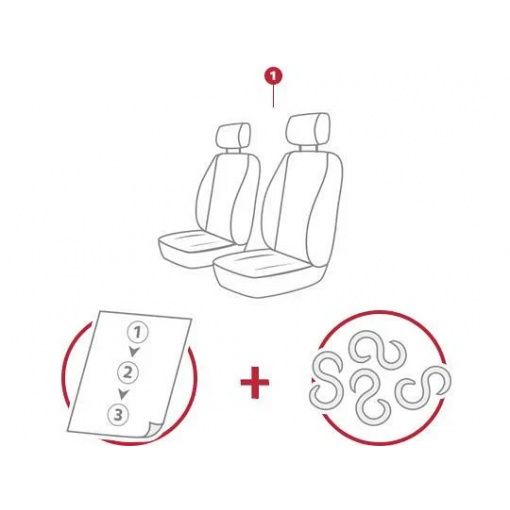 Комплектация включает 2 майки для передних сидений и монтажные крючки, что позволяет легко установить их на сиденье автомобиля .