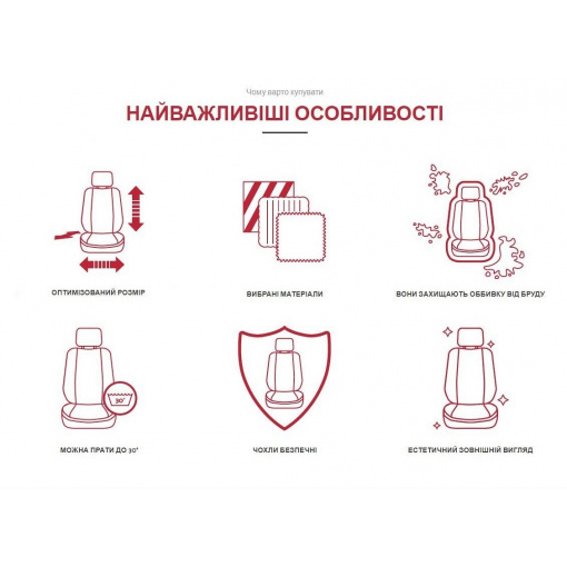 Универсальные чехлы, благодаря их предназначению для разных моделей легковых автомобилей, не имеют вырезов для ремней и подголовников, расположение которых различно в отдельных моделях. Все необходимые отверстия следует сделать самостоятельно после тщательной установки и сборки крышек. Обложки изготавливаются из материалов, ламинированных пенопластом и вагонкой, благодаря чему их структура не будет поцарапана.