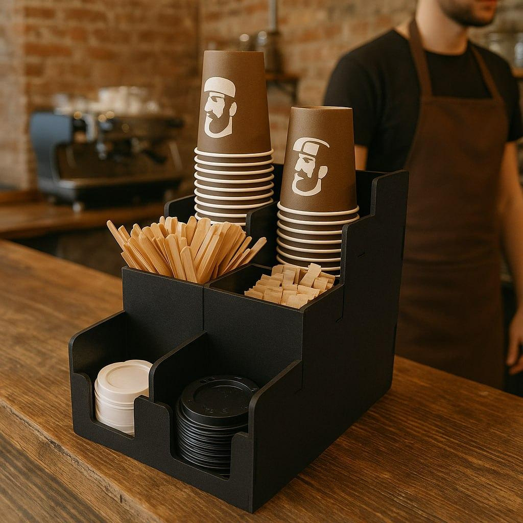 Практичный и стильный органайзер — идеальное решение для удобной организации кофейной зоны в кофейне, офисе или на мероприятиях.
