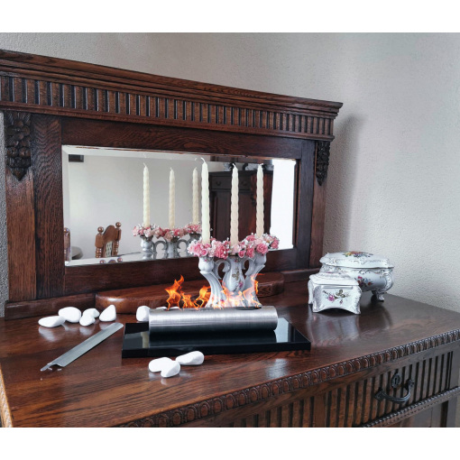 Основа биокамина изготовлена из высококачественной стали и покрыт термостойкой краской. Биокамин дополнительно оснащен горелкой из нержавеющей стали уникальных форм, который украшает изделие.