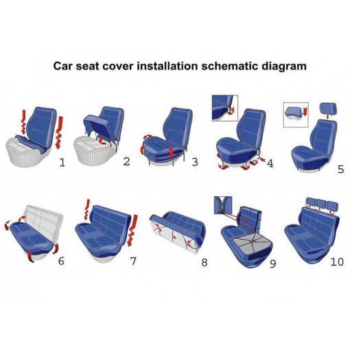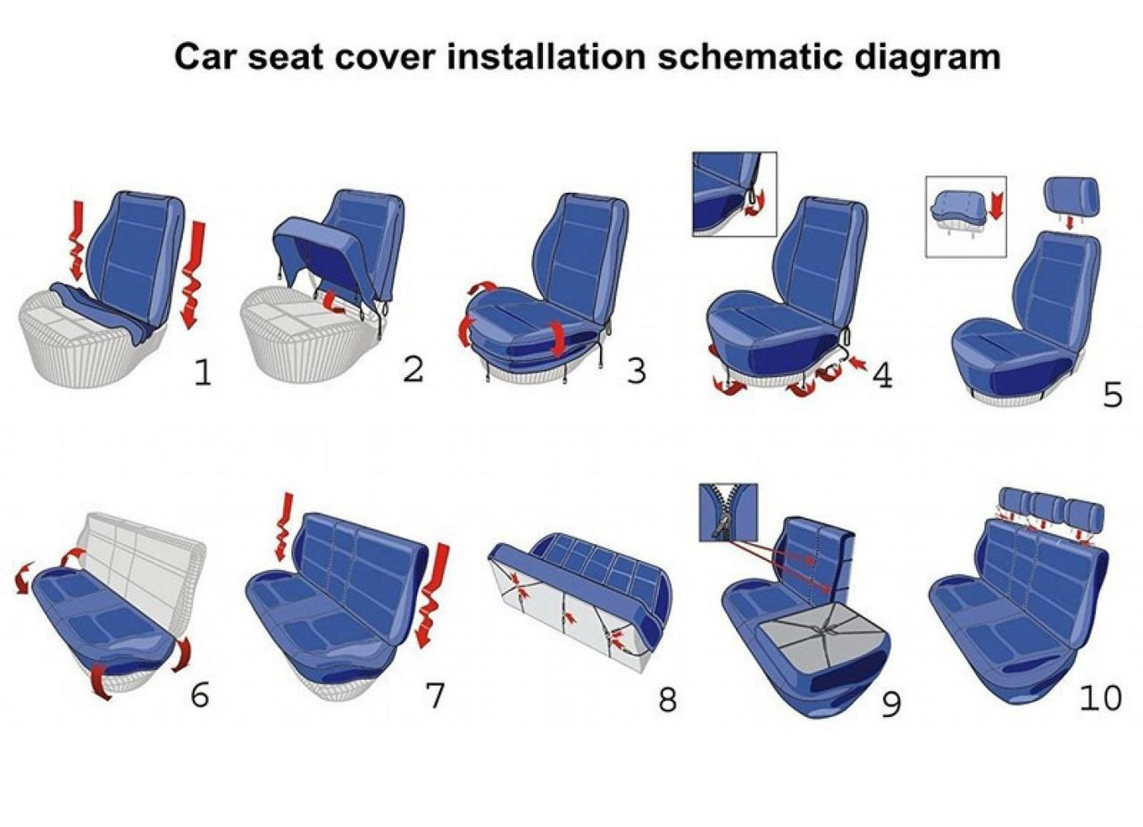 Чехлы для спинки и заднего сиденья оснащены молнией, благодаря чему чехлы можно использовать в автомобилях как с полными, так и с разделенными сиденьями.