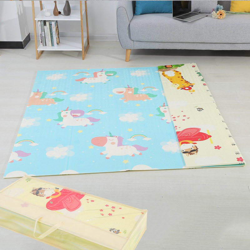 Двосторонній з одного боку забавні єдинороги, з іншого боку лінійка можна вимірювати малюка, цифри для рахунку тварини та літачки.