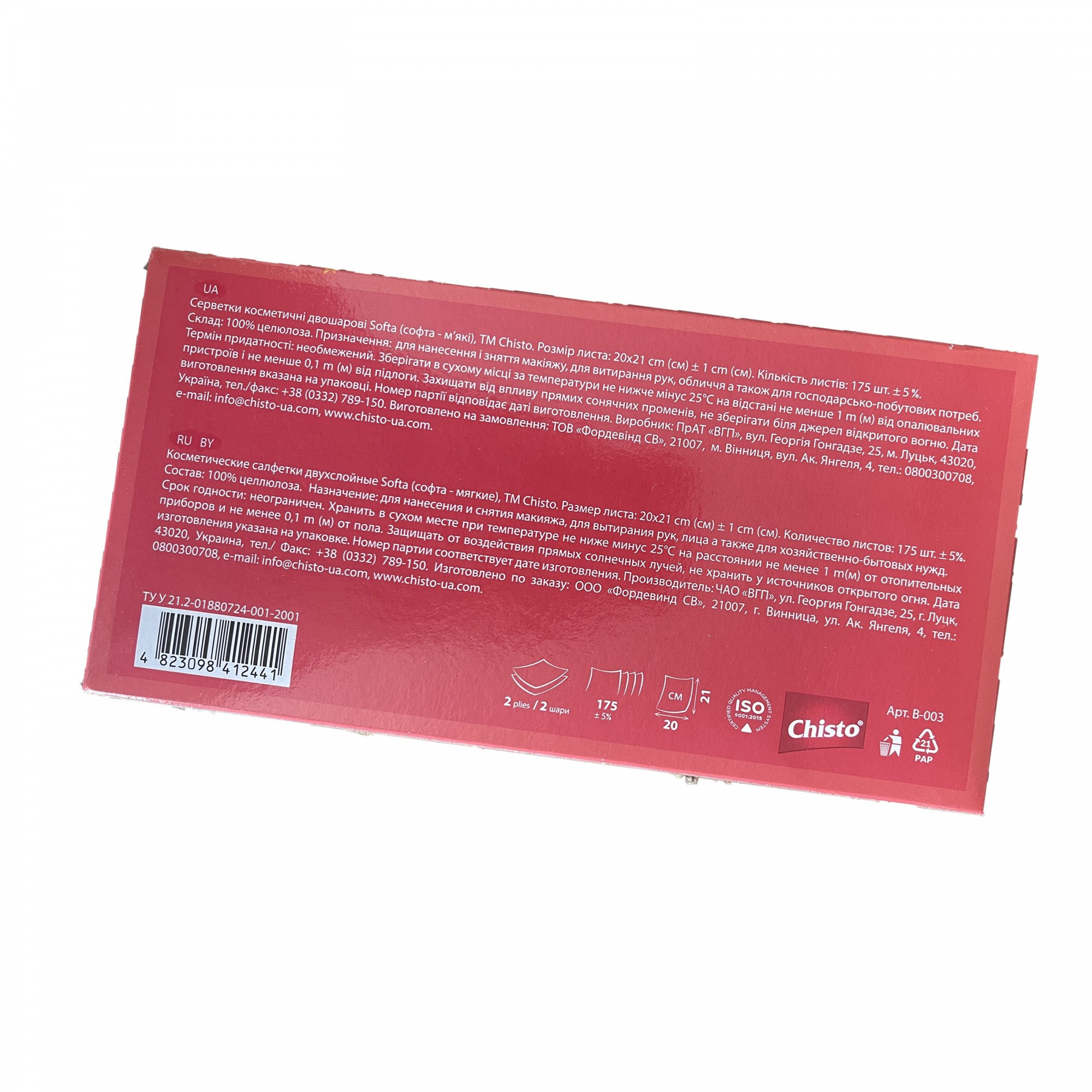 Двухслойные сухие салфетки Softa ТМ Chisto размером 20*20 см 175 шт