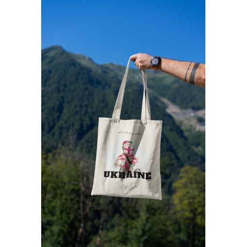 Эко-сумка шоппер с этническим принтом "Кукла-мотанка. Мотанка. Motanka doll. Украина. Ukraine" Кавун Бежевый