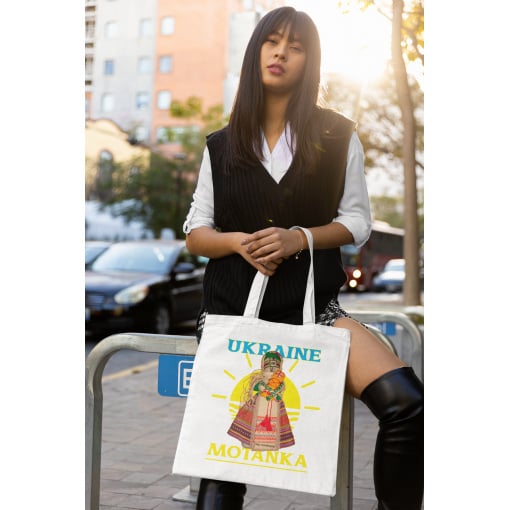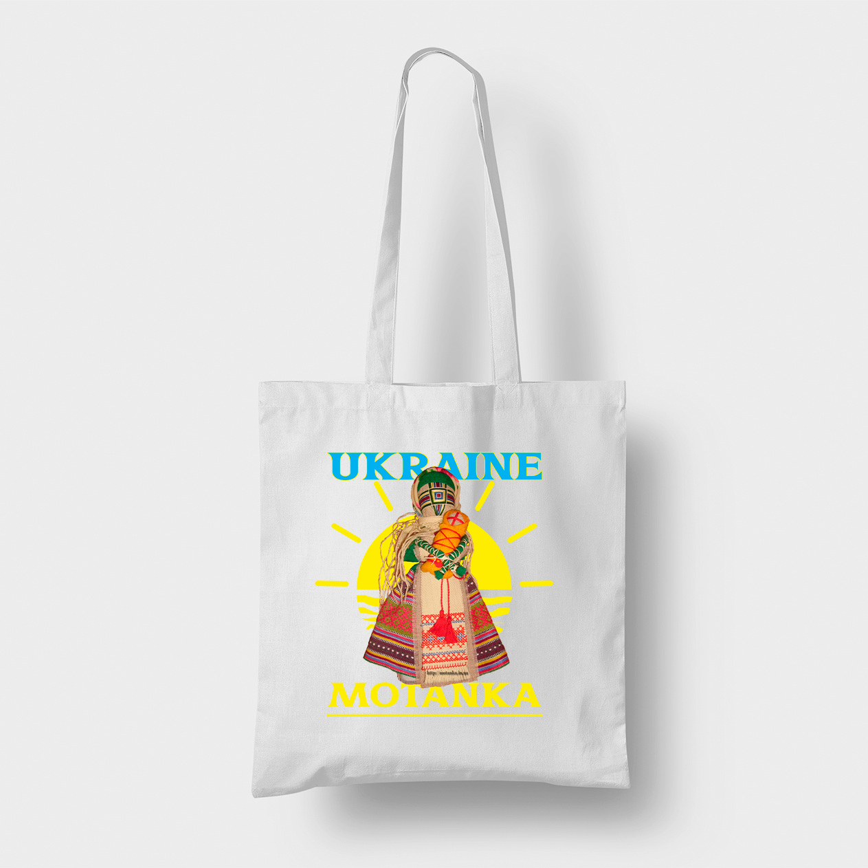Эко-сумка шоппер с этническим принтом "Кукла-мотанка. Мотанка. Motanka doll. Ukraine Motanka" Кавун Бежевый