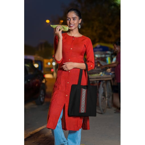 Эко-сумка шоппер с патриотическим принтом "Украинский красно-белый орнамент" Кавун черный