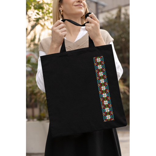 Эко-сумка шоппер с патриотическим принтом "Украинский орнамент цветочный" Кавун черный