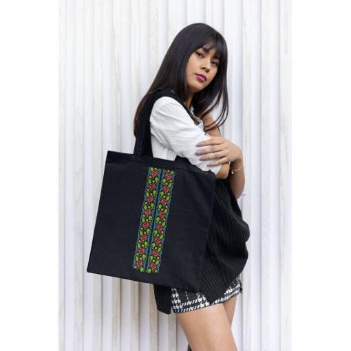 Эко-сумка шоппер с патриотическим принтом "Украинский цветной цветочный вертикальный орнамент" Кавун Бежевый