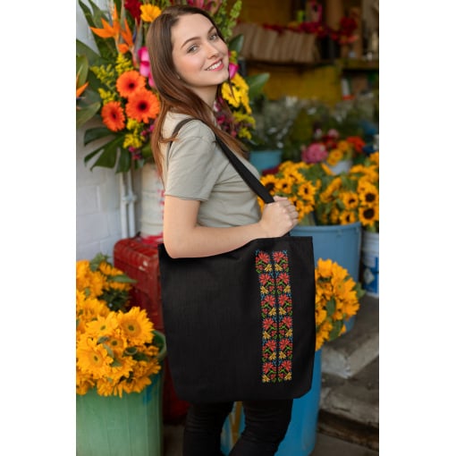 Эко-сумка шоппер с патриотическим принтом "Украинский цветочный орнамент" Кавун Бежевый