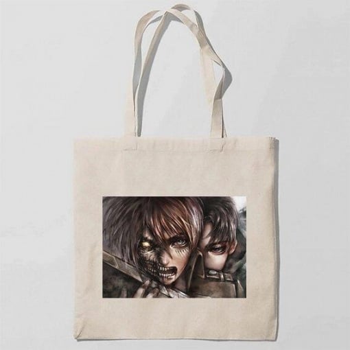 Эко-сумка шоппер с принтом Attack on Titan - Вторжение титанов 12 Кавун Бежевый
