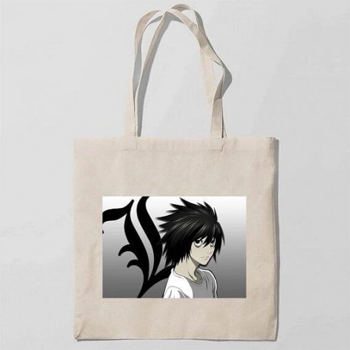 Эко-сумка шоппер с принтом Death Note - Тетрадь смерти 8 Кавун Бежевый