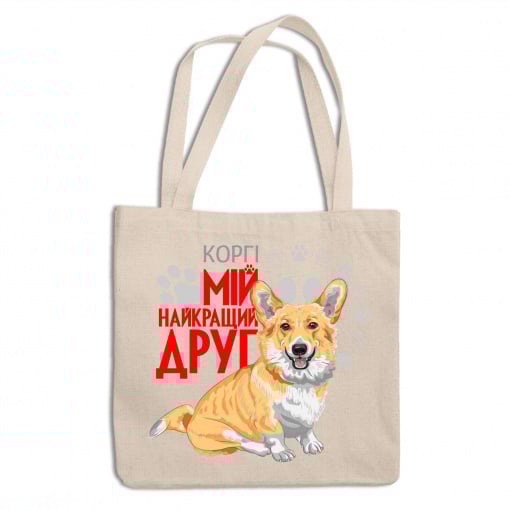Эко-сумка шоппер с принтом для собачника "Корги Мой самый лучший друг" Кавун ЭСШ001363