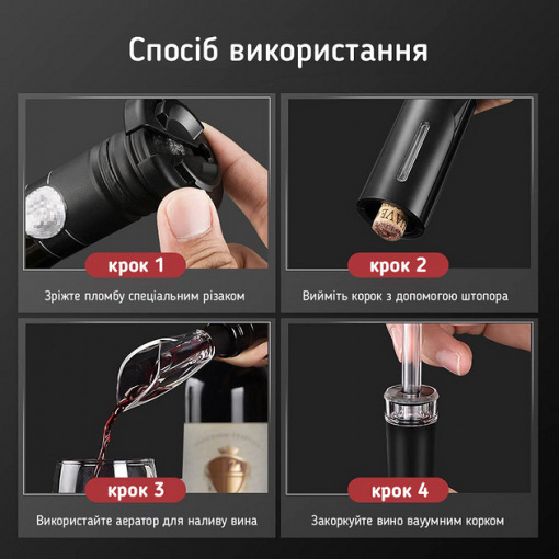 Детальні характеристики Электроштопор No Brand GoodWine 5в1 Черный (WineKit5in1).