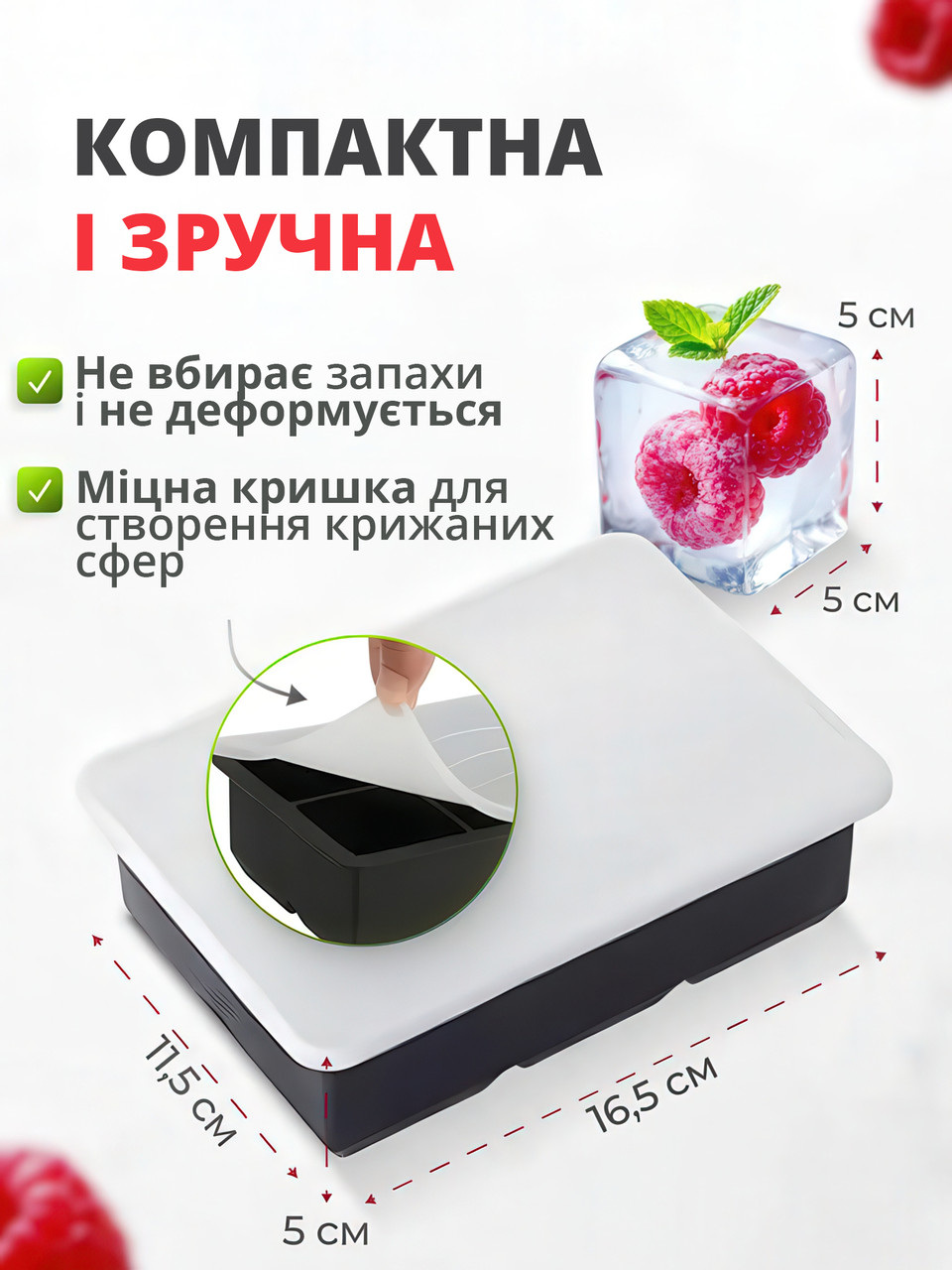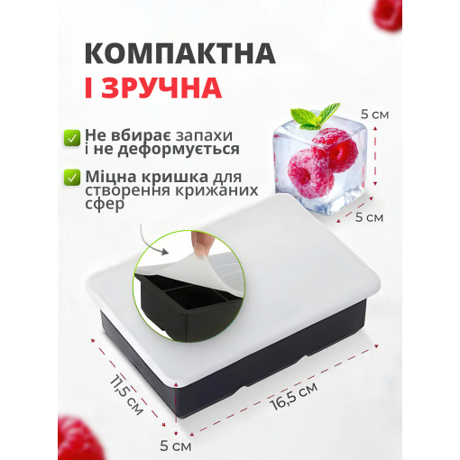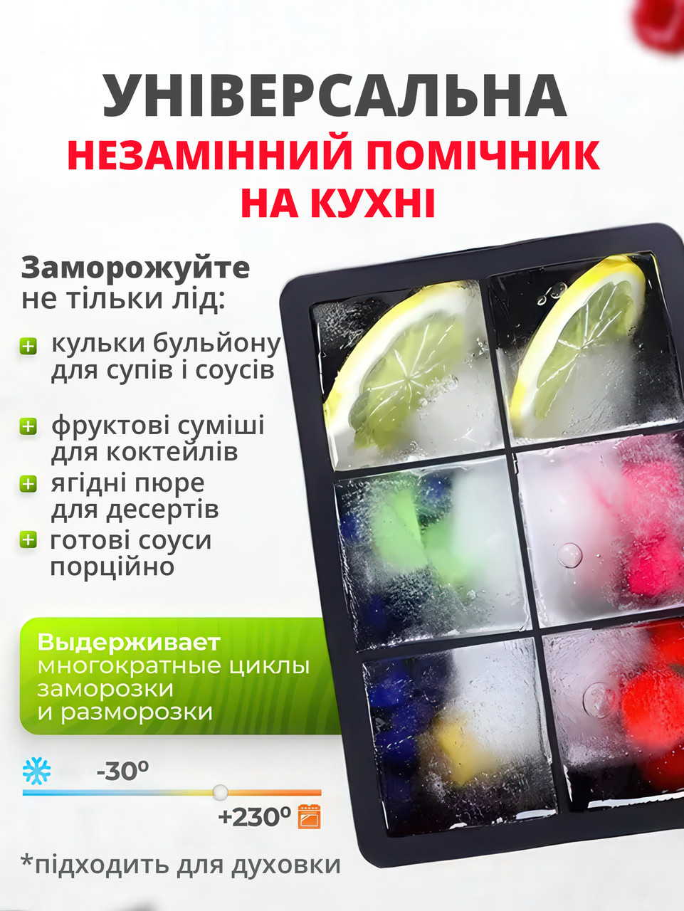 Детальні характеристики Форма для льда No Brand 16.5х11.5 см 125 мл Черный (FORKUB-BLK-1320).