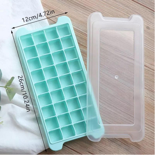 Силиконовая форма для льда с крышкой на 36 ячеек – это очень практичный и удобный лоток для изготовления фигурного льда. Материал: изготовлена из высококачественного, гибкого и безопасного для пищевых продуктов силикона. Это обеспечивает удобство при разделении льда и долговечность использования. Дизайн: Форма имеет 36 ячеек, что позволяет создавать маленькие кубики льда, идеальные для коктейлей или любых напитков. Крышка: Имеет крышку, что позволяет избежать разлива воды и предотвращает загрязнение в морозильной камере. Крышка также позволяет сохранять форму в холодильнике, не переживая, что вода прольется или запомнится запахами. Легко использовать - просто налейте воду или другие жидкости (сок или коктейль), положите в морозильник, и через несколько часов получите идеально сформированные кубики или фигурки льда. Размер: Благодаря маленьким размерам ячеек, этот лоток идеален для получения большого количества маленького льда, который быстрее охлаждает напитки.