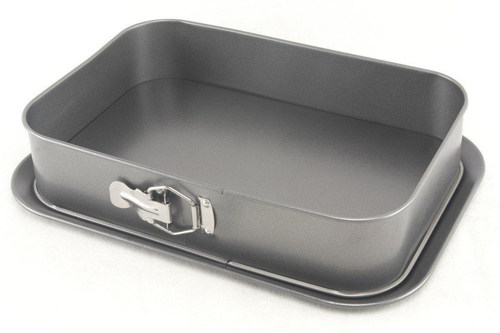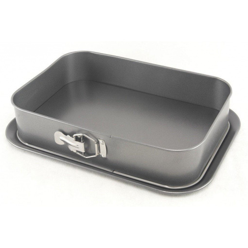 Прямоугольная форма для выпекания изготовлена из высококачественной углеродистой стали с антипригарным покрытием. Форма равномерно и быстро прогревается, что способствует лучшему пропеканию. Благодаря разъемному механизму, изделие легко извлекается из формы без повреждения. Широкое съемное дно с увеличенными краями препятствует вытеканию массы из формы, что позволяет легко украсить и сервировать выпечку.