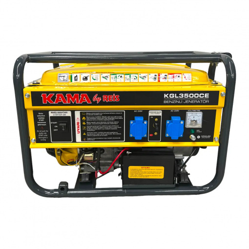 Электрогенератор KAMА KGL 3500CE турецкого производства с мощным и надежным 4-х тактным двигателем обеспечивает максимальную мощность 2800 Вт имеет функцию AVR (стабилизация напряжения) и обладает автоматическим стартером.