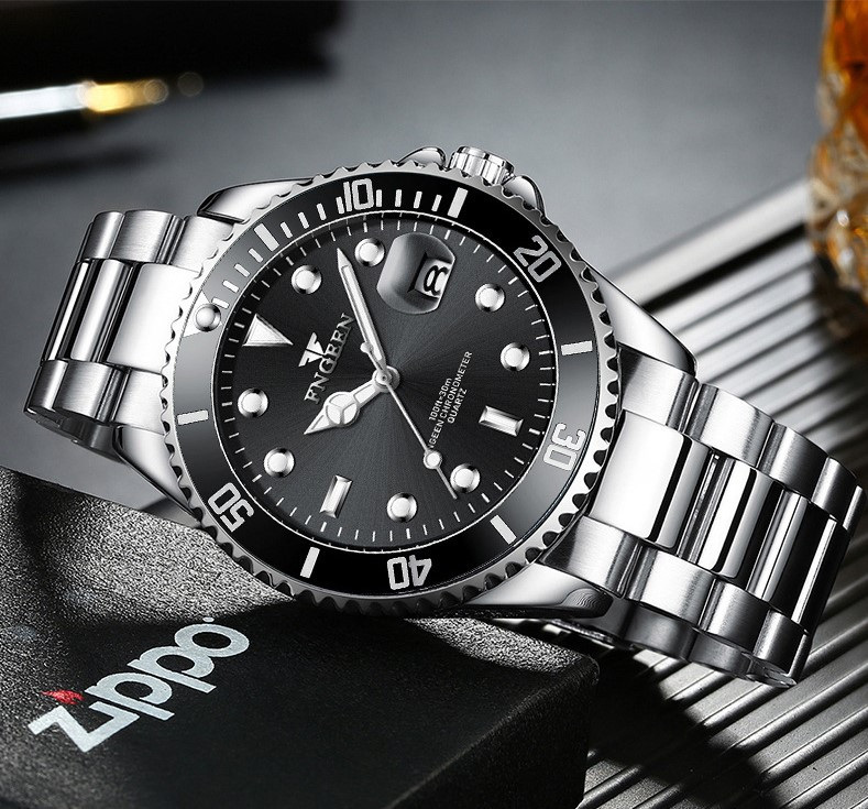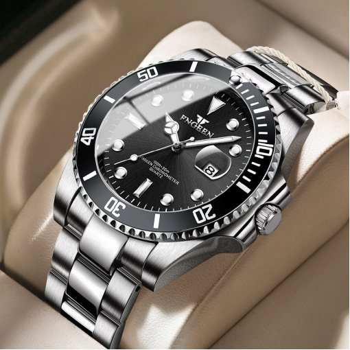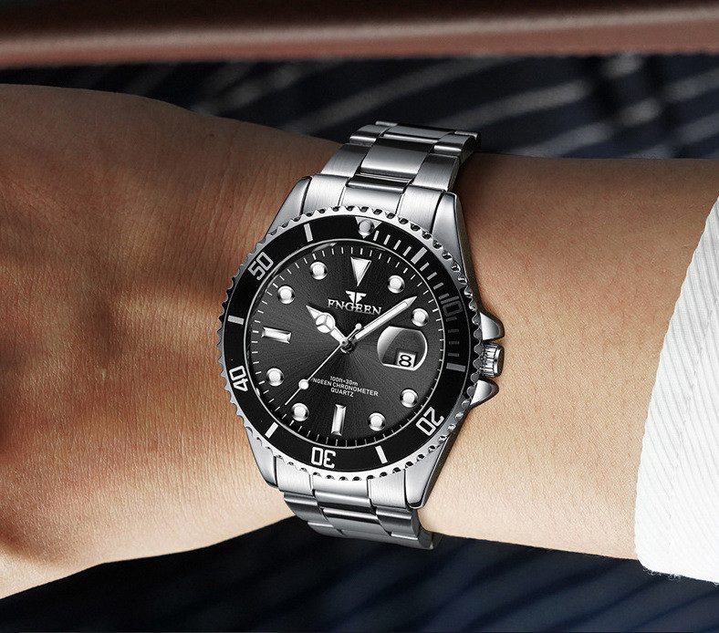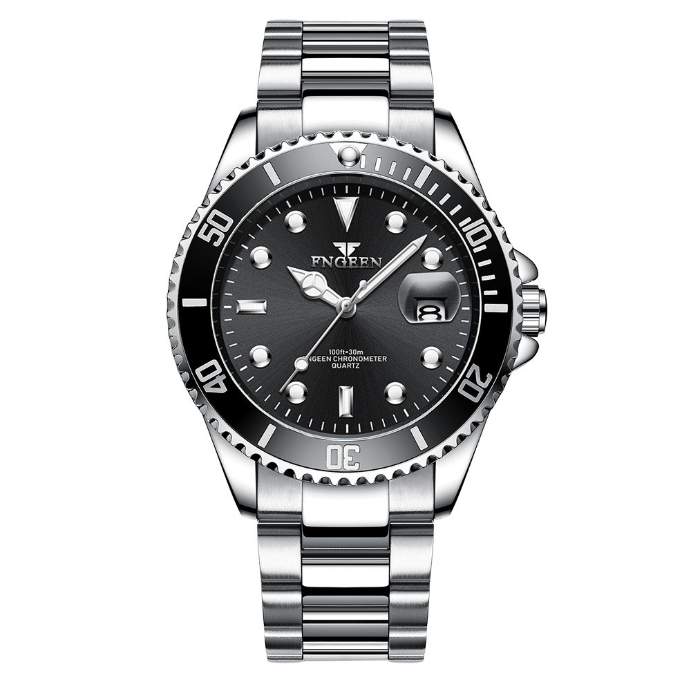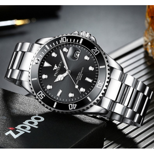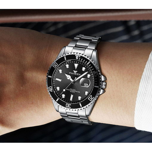 Годинник Fngeen чоловічий на руку з безелем Срібло з чорним циферблатом