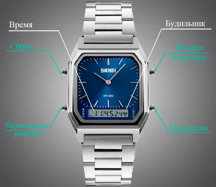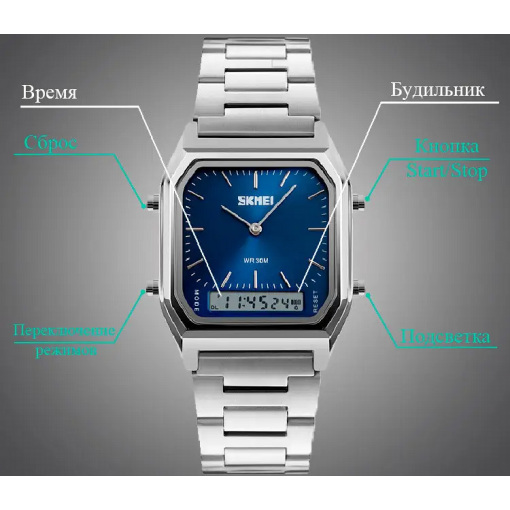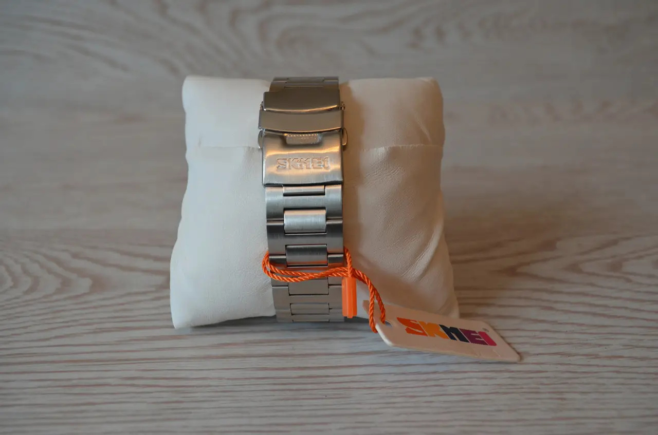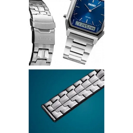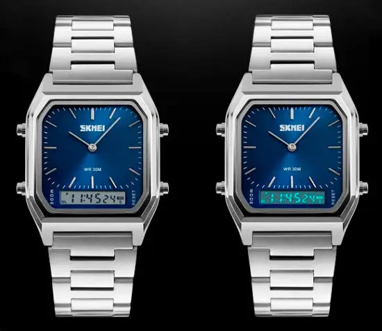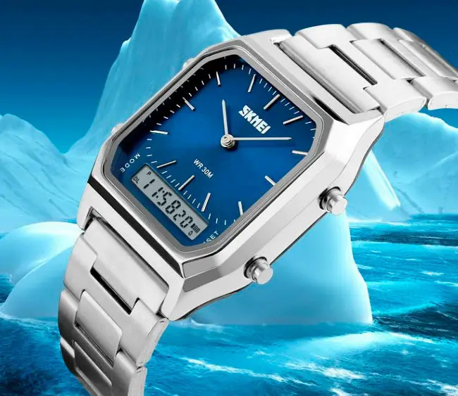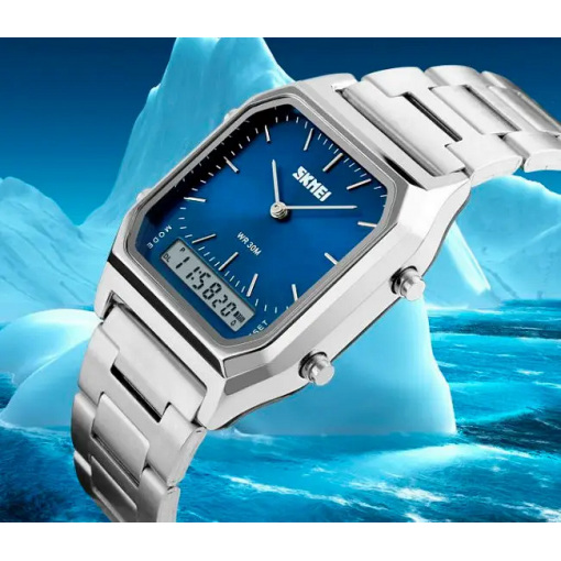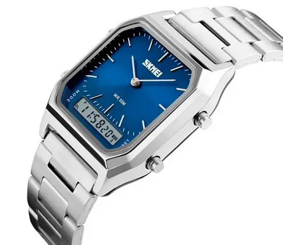 Корпус Skmei виконаний з сталі, стійкого до ударної дії і зручно розміщений на зап'ястку. Завдяки великому дисплеєві визначити поточний час легко і просто! Навіть під час занурення на глибину Skmei працює бездоганно і гарантує незмінну точність. Стильний хронометр Skmei працює від стандартного елемента харчування, який легко купити в будь-якій крамниці. Цей годинник ідеальний для тих, хто не думає про своє життя без активності та постійного руху. Наручний годинник SKMEI 1220 І в цьому їх надзвичайно сильна харизма. Переваги SKMEI 1220 Вони не обмежуються лише зовнішнім виглядом. Зверніть увагу на точність механізму — точність визначення часу гарантує калібрований японський механізм від Miyota. Досконало функціональні, SKMEI 1220 Він може не лише показувати поточну дату, але й підсвічувати і будильник, і вони мають водонепроникні властивості, постійно працюючи в 3 атмосфері.