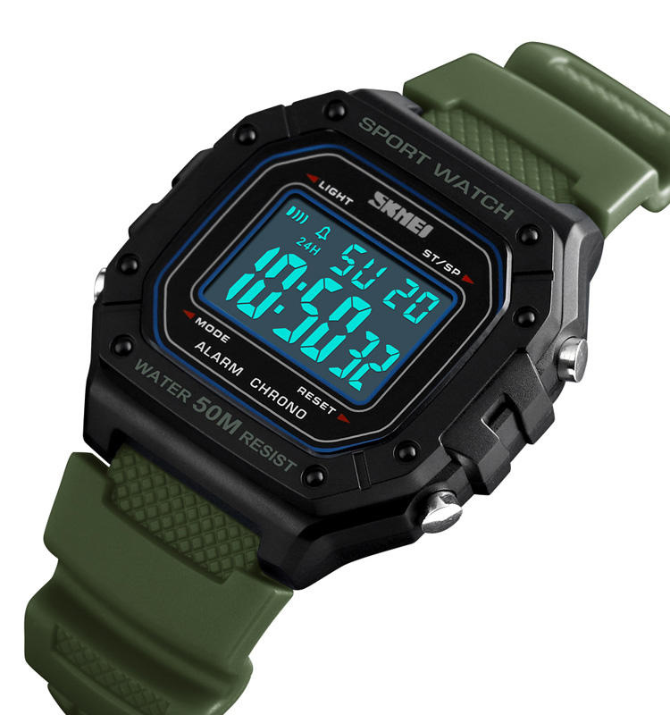 Skmei 1496A  - стильний годинник від відомого виробника Skmei. Їхній універсальний дизайн поєднує в собі спортивні та повсякденні риси. Електронний циферблат пропонує безліч функцій, включаючи другий часовий пояс, будильник, секундомір та календар. Водонепроникний корпус робить їх надійним аксесуаром у будь-яких умовах. Підсвічування забезпечує зручність у темну пору доби. Годинник відображає години, хвилини, секунди, число та день тижня. Їхня легка вага та зручний каучуковий ремінець роблять їх ідеальним вибором для активного способу життя.