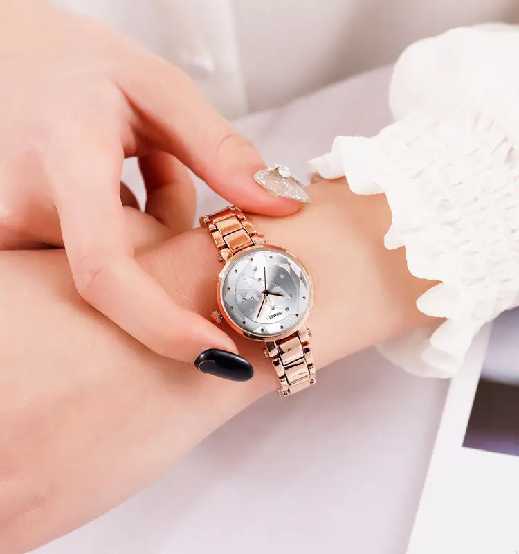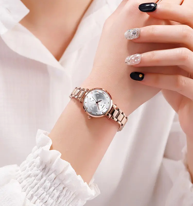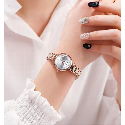 Циферблат із нанесеними зірочками створює чарівну атмосферу, яка пожвавлює ваш образ і додає вишуканості кожній миті. Цей годинник не просто показує час, він втілює в собі мистецтво і стиль, роблячи щодня особливим і захоплюючим. Дозвольте своєму стилю засяяти яскравіше з нашим годинником "Зоряне сяйво".