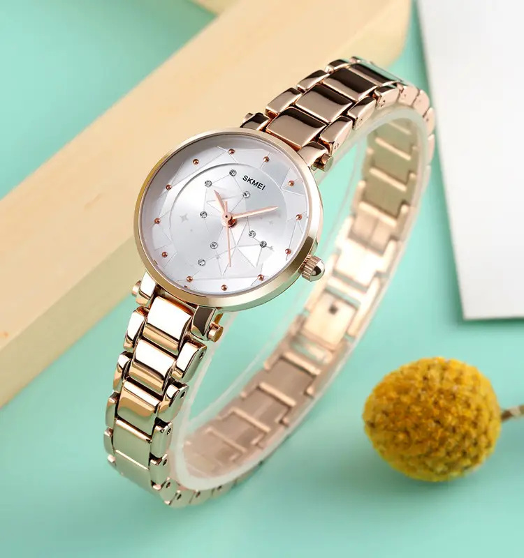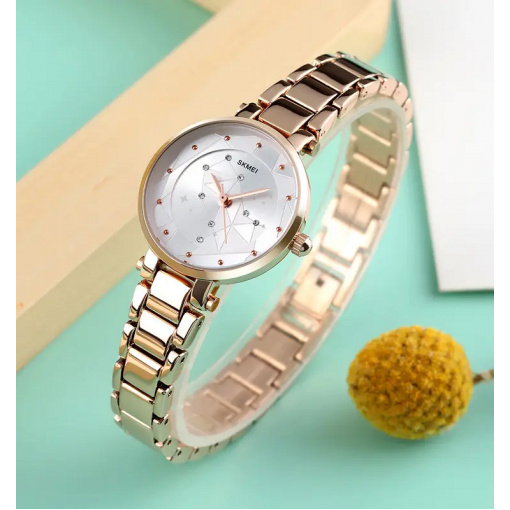 Годинник жіночий наручний Skmei 1411 Зіркове сяйво Рожеве золото