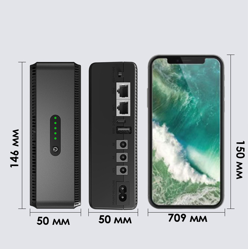 ИБП Lesko Mini UPS для WI-Fi роутера Многофункциональный блок бесперебойного питания, который поможет обеспечить непрерывную работу ваших электронных устройств в любое время, даже при полном отсутствии электроснабжения. Благодаря продуманному дизайну, широкой совместимости и простоте использования, устройство станет незаменимым помощником в вашем доме, офисе или на даче. Достоинства: Бесперебойная работа ваших устройств. Обеспечивает постоянное питание для интернет-роутеров, камер видеонаблюдения, смарт-динамиков, зарядных станций, систем "умный дом" и другого оборудования. Работает даже при аварийном выключении света, обеспечивая стабильность работы вашего интернета или систем видеонаблюдения. Широкий набор разъемов и универсальность. Поддерживает разные типы выходов: PoE (Power over Ethernet) для устройств с поддержкой питания через кабель Ethernet. USB и Type-C порты для зарядки телефонов, планшетов или портативных гаджетов. Специальные разъемы на 5V, 9V, 12V, которые подойдут для камер видеонаблюдения или другого оборудования. Благодаря многофункциональности можно одновременно подключать несколько устройств. Компактный, но мощный. Эргономичный дизайн позволяет легко переносить устройство или установить его в компактном пространстве. Может использоваться в качестве портативного павербанка, что особенно удобно для путешествий или длительных поездок. Энергосбережение и стабильность. Разработанный для эффективного использования энергии, он поможет продлить время работы устройств при аварийном выключении электроснабжения. Обеспечивает плавную подачу питания без скачков напряжения. Широкий диапазон входного напряжения. Поддержка сетей с напряжением от 100 до 240 В, что делает устройство подходящим для использования в любой стране мира. Универсальный блок бесперебойного питания – ваша гарантия стабильности и комфорта. Использование: Подключите к сети. Для подключения устройства к розетке используйте стандартный кабель питания. Настройте устройства. Выберите требуемый разъем: USB для телефонов, PoE для роутера или специальный DC-выход для камер или других гаджетов. Активируйте питание. Нажмите кнопку питания, и устройство автоматически начнет подавать ток к устройствам. Контролируйте состояние батареи. LED-индикаторы на корпусе показывают уровень заряда аккумулятора, что позволяет своевременно заряжать его. Не упускайте возможности обеспечить безопасность своих устройств и удобство в повседневной жизни! Заказывайте DC UPS сегодня и получите современный уровень комфорта.