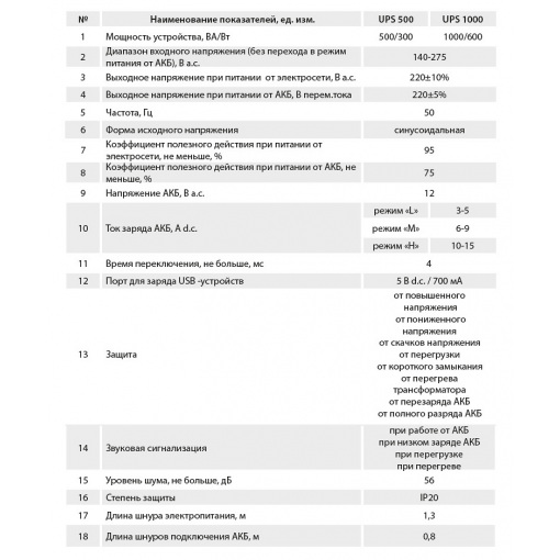 • Высокая скорость переключения электропитания потребителей от электросети на питание от аккумулятора