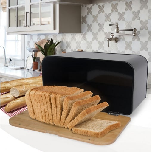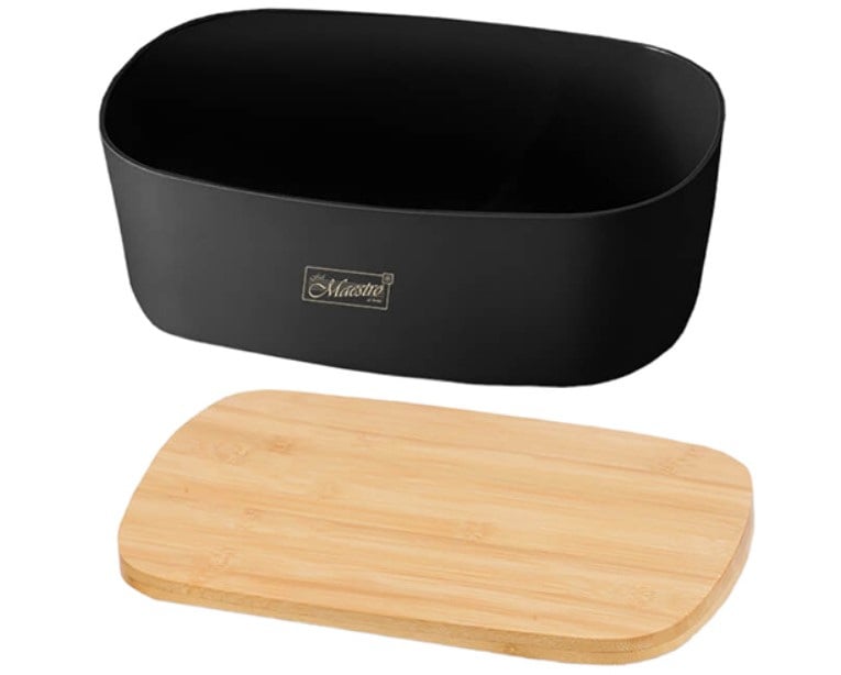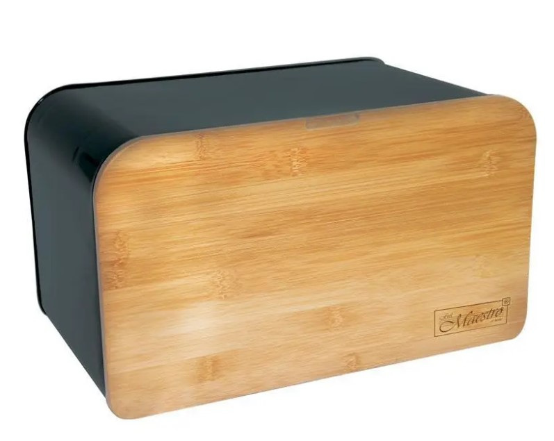 Хлебница Maestro MR‑1770 — это сочетание современного дизайна и функциональности. Корпус выполнен из прочного и лёгкого материала, устойчивого к повреждениям и влаге. Бамбуковая крышка служит не только крышкой, но и удобной разделочной доской для нарезки хлеба.
